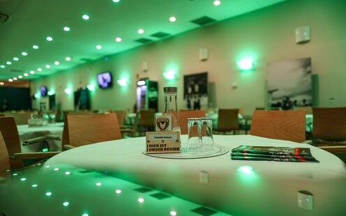 Sie erwartet eine umfangreiche Getränkeauswahl mit einer Vielzahl an erfrischenden Optionen. Von klassischen Softdrinks über aromatischen Kaffee und Tee bis hin zu erfrischendem Bier oder erlesenen Weinen an unserer Weinbar. Ab sofort wird es für Sie an unseren Spieltagen auch einen Sektempfang geben.